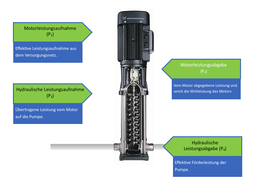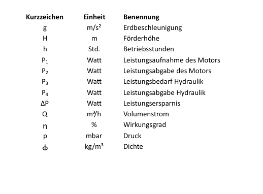 Die Berechnung des Energieeinsparpotentials durch einen 1 zu 1 Austausch der Pumpen beruht auf folgenden physikalischen Grundlagen.